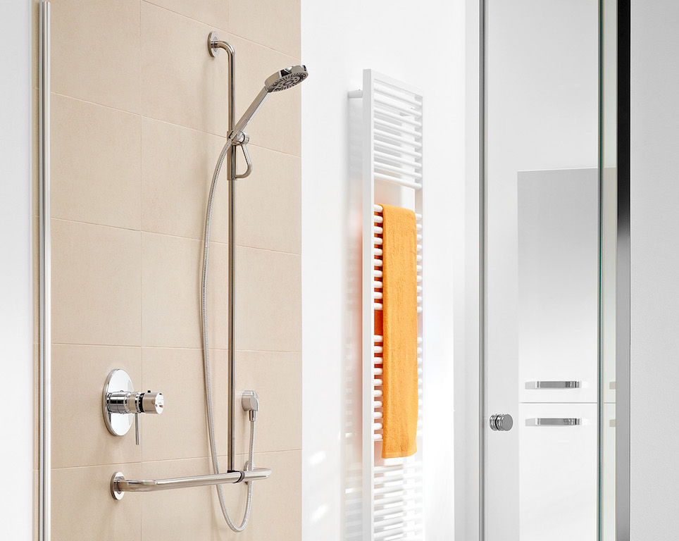 Die Heizkörper des Programmes TAKE sorgen zuverlässig für angenehme Temperaturen – leistungsfähig, effizient und noch dazu attraktiv. Sie verteilen die Wärme gleichmäßig im Bad, sorgen für ein gesundes Raumklima und trocknen Ihre Handtücher schnell und gründlich. Zudem punkten sie auch visuell: beispielsweise TAKE Sprossenheizkörper sind sehr zurückhaltend gestaltet und passen sich in neutralem Weiß perfekt der Badumgebung an. Auf Wunsch stehen sie in vielen verschiedenen RAL-Tönen zur Verfügung, so dass der Heizkörper reizvoll kontrastierend eingesetzt oder harmonisch in das Badzimmerambiente eingebunden werden kann – ganz nach Ihrem persönlichen Geschmack.
